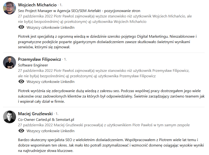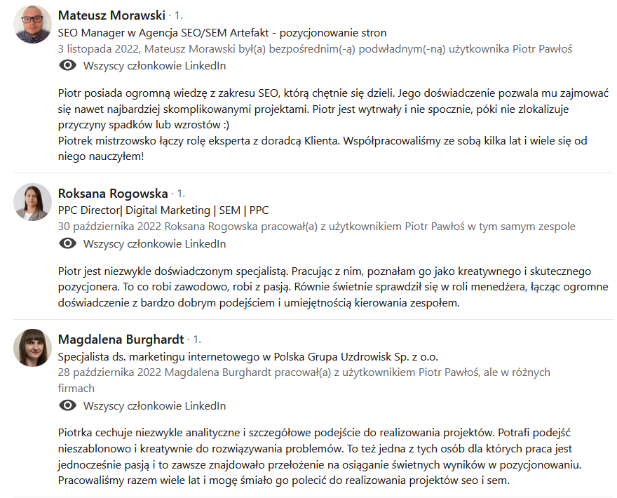Od 2020 roku zarządzałem 40 osobowym zespołem, jako Menedżer SEO w Artefakt.